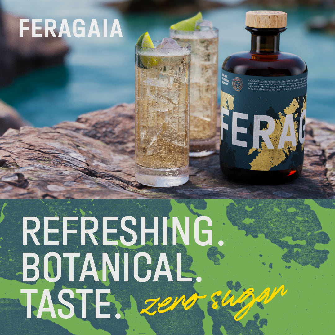 Feragaia embodies a contemporary approach to drinking, it doesn’t preach moderation, it is a product of wanting a truly satisfying alternative to alcohol. Serves; Land – On the Rocks. Sip, savour and enjoy. Serve 50ml/2oz over a single block of ice and an orange peel Sea – A light tonic. Crisp, dry and refreshing. Serve 50ml/2oz, top with soda or light tonic and garnish with a bay leaf We have also found that Feragaia compliments other serves as well, many of which are still to be discovered. Please share your discoveries with us at hi@feragaia.com or @feragaia (Instagram)